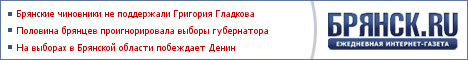 | 2005–2015 © Ежедневная интернет-газета БРЯНСК.RU При цитировании активная ссылка на БРЯНСК.RU обязательна Материалы газеты могут содержать информацию 18+ | ![]() | Открыв данный сайт, Вы соглашаетесь с Правилами cайта (договор-оферта). Если вы не согласны с Правилами, немедленно покиньте сайт! | ![]() |