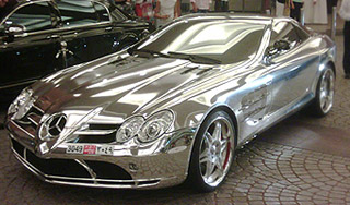 | Версия для печати Место сосредоточения самых дорогих и экзотических автомобилей со всего мира – курорт Дубаи – порадовал нас очередным шедевром.Весь мир уже должен привыкнуть к новостям о сумасшедших авто, которые раскатывают по этому городу. Стоимость таких машин больше напоминает номера телефонов, причем с кодом города и страны. На этот раз около крупного шоппинг-центра Mall of the Emirates припарковался Mercedes-Benz SLR McLaren. Но не простой, а… нет, не золотой. Хотя цена автомобиля, скорее всего, тянет именно на этот драгоценный метал. Абсолютно весь кузов дорогого спортивного автомобиля был покрыт хромом. Легкий металлический налет присутствовал даже на стеклах спорткара. Так что за ними ничего нельзя было разглядеть. Не хромированными остались только фары, шины и воздухозаборники на переднем бампере. Оригинальный автомобиль был похож на каплю ртути, случайно принявшую форму спорткара, и отражал все, что происходит вокруг. К сожалению, никаких подробностей об автомобиле не сообщается. Да и о цене этой игрушки нам остается только догадываться. Один только серийный SLR McLaren в стандартной комплектации стоит несколько сотен тысяч долларов. "Стоковый" Mercedes SLR McLaren обладает не только эффектной внешностью, но и впечатляющими техническими характеристиками. Под капотом спорткара компрессорный двигатель V8 мощностью 626 л.с. SLR – один из самых быстрых автомобилей в мире. До "сотни" авто разгоняется всего за 3,8 секунды. Максимальная скорость составляет около 334 км/ч. При этом как все эксклюзивные модели авто SLR McLaren будет выпущен всего в количестве 3500 экземпляров, которые на данный момент уже почти раскуплены. И один из них превратился в сверкающую игрушку для очередного миллиардера. Дубаи в очередной раз подтвердил, что там всегда найдется место экстравагантным, эпатажным, дорогим и безумно дорогим автомобилям. Про финансовый кризис в этих местах, кажется, слышали только краем уха и при плохой связи. Кстати, помимо эффектного хромированного Mercedes-Benz SLR McLaren около того же центра были замечены Lamborghini Gallardo, Bentley Flying Spur, Porsche 911 Turbo и совсем недавно представленный Rolls-Royce Drophead Coupe, сообщает TopSpeed. Источник: Дни.ру