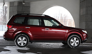 | Версия для печати В прошлом году в России появился Subaru Forester третьего поколения. Этот кроссовер не нуждается в особом представлении - дебют первого "Форестера" состоялся более десяти лет назад в 1997 году. Он стал одним из родоначальников класса SUV. За это время "Лесник" (так переводится название модели) не только смог добиться признания у автомобилистов, но и заработал хорошую репутацию у любителей полноприводной техники. Язык не поворачивается сказать в адрес Subaru Forester презрительное прозвище "паркетник".Современной версии "Форестера" приходится конкурировать с такими кроссоверами, как Honda CR-V, Hyundai Tucson, Mitsubishi Outlander, Nissan X-Trail, Renault Koleos, Toyota RAV4, Volkswagen Tiguan и недавно вышедшим Ford Kuga. На российском рынке представлены три модификации "японца" с двумя "атмосферниками" объемом 2 л (150 л.с.) и 2,5 л (172 л.с.), а также 2,5-литровым турбомотором мощностью 230 л.с. Все они сочетаются как с механическими пятиступенчатыми коробками передач, так и с 4-ступенчатыми автоматическими трансмиссиями. В ходе тест-драйва мы познакомились с "Лесником", оснащенным двухлитровым двигателем и "автоматом". Внешние изменения пошли "Форестеру" на пользу. За счет укороченного заднего свеса автомобиль выглядит стройным и подтянутым, что, в общем-то, характерно для всех современных кроссоверов. Похожие на соколиный глаз фары и вытянутая хромированная решетка радиатора с горизонтальными линиями и созвездием Плеяд в центре создают узнаваемый образ Subaru. На фоне остальных "паркетников" Forester выгодно отличается отсутствием псевдовнедорожной атрибутики. Его формы просты и незатейливы, наверное, так и должен выглядеть настоящий универсал повышенной проходимости в XXI веке. Благодаря увеличению высоты (на 4,5 см), ширины (на 6,5 см) и колесной базы (на 9 см) салон автомобиля стал просторнее. В первую очередь это заметят крупные пассажиры, сидящие сзади, где на целых 11 см увеличилось пространство для ног. Например, человек ростом 185-190 см может усесться сам за собой, не испытывая особых неудобств. Спинка заднего сидения теперь регулируется, а в его подушке вмонтирован раскладывающийся оригинальным образом столик с подстаканником. Кроме того, увеличился угол, на который открываются двери, что облегчает посадку или высадку пассажиров, а также установку детских кресел. Более широкие проемы дверей получены за счет применения конструкции дверей с оконными рамками – больше эффектных стекол без рамок не будет. Причина такого решения кроется в растущих требованиях к пассивной безопасности. Передняя панель по форме напоминает раскинутые крылья птицы. По задумке дизайнеров, такой эффект позволяет визуально увеличить размеры салона. Мотив крыльев также подчеркивают серебристые вставки, контрастирующие с "торпедо" темного цвета. Смущает обилие жесткой пластмассы в салоне, с другой стороны, такой материал меньше боится повреждений, да и царапины не столь заметны. Есть толк и в черном кожаном салоне – ему не требуется постоянная химчистка, достаточно протереть влажной тканью. Недоумение вызвала несуразная комбинация приборов, будто бы перешедшая сюда с дешевых китайских автомобилей: на "игрушечных" синих шкалах с трудом читаются мелкие белые цифры. "Субаровцы" поскупились даже на привычный указатель температуры охлаждающей жидкости. Чем была плоха прежняя приборная доска, куда более информативная 