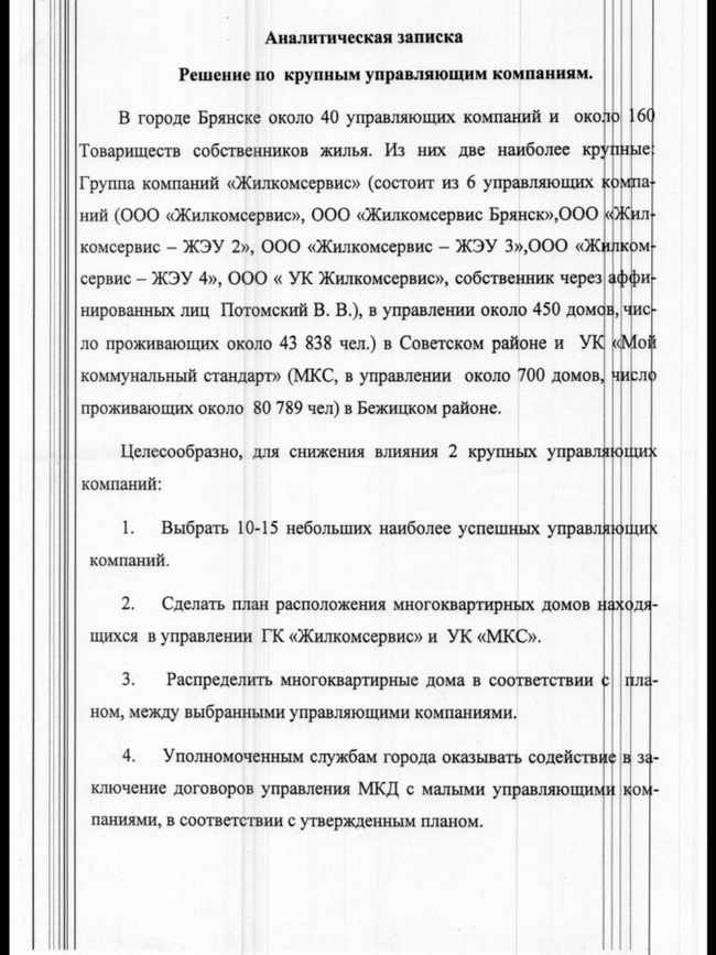 | Версия для печати В редакцию газеты «БРЯНСК.RU» обратились жители многоквартирного дома №29А по улице Крахмалева в Советском районе Брянска. С момента сдачи дома в эксплуатацию в 2001 году там действует зарегистрированное в установленном порядке товарищество собственников жилья. В 2005 году ТСЖ заключило договор на обслуживание с Управляющей компанией «Домовой». В последующие годы «Домовой» в значительной степени за счет своих средств благоустроил дом: исправлен брак в тепловом узле, установлен добротный металлический забор, калитки и ворота, обустроена асфальтированная стоянка. Косметический ремонт проводился два раза в год. Стоимость работ возвращалась коммунальными платежами жильцов все последующие годы. Стоит отметить, что ТСЖ удалось добиться и сравнительно низкой стоимости коммунальных услуг. Многие читатели из числа владельцев квартир могут позавидовать даже такому положению дел. Суровая жилищно-коммунальная действительность в Брянске такова, что в большинстве случаев управляющие компании выполняют в домах лишь аварийные работы и то, абы как, а о существенных улучшениях условий проживания можно только мечтать, т.к. собираемые с жильцов деньги на содержание и текущий ремонт повсеместно разворовываются. Уже на этом фоне история дома по Крахмалева может быть интересной, но больше всего в рассказе жильцов дома заинтересовало другое. В настоящее время высокопоставленный чиновник Правительства Брянской области фактически пытается осуществить рейдерский захват управления общедомовым имуществом не считаясь с мнением жителей дома. В начале текущего года из-за накопившихся в доме проблем ТСЖ приняло решение отказаться от услуг «Домового» и заключить договор с другой компанией, имеющей репутацию, что и было сделано. Сразу после этого, летом 2013 года, жители дома обнаружили у себя в почтовых ящиках анкеты и листовки, призывающие провести заочное голосование по выборам Совета дома и избрать нового председателя - Юрия Николаевича Карпенко. Результаты голосования предлагалось сдать прямо в его квартиру. Однако, жители дома проигнорировали эту неожиданную инициативу, а ТСЖ «Крахмалева-29А» совместно с новой Управляющей компанией провели масштабный комплекс работ по ремонту инженерных сетей жилого дома, мест общего пользования, перекрытию крыши, ремонту канализации, подвального помещения и многому другому. В основной своей массе данные работы были так же проведены за счет средств управляющей компании и должны погашаться жильцами в течении нескольких последующих лет. Даже после этого Карпенко предпринял вторую попытку. Декабрьским утром жители дома снова обнаружили воззвания в своих почтовых ящиках, а с доски объявлений и стен дома Юрий Николаевич призвал всех на проведение общего собрания жителей с целью ликвидации ТСЖ «Крахмалева-29А» и создания нового. Ликвидируя действующее и создавая новое ТСЖ, Юрий Николаевич формально получает юридическое лицо для руководства жилым домом, свободное от обязательств перед действующей управляющей компанией, прекрасно обустроенную придомовую территорию, новые инженерные сети и т.д. Как говорится, живи и радуйся, денежки собирай! Наглая попытка чиновника Карпенко ликвидировать ТСЖ, членом которого он даже не является, в лучших традициях жанра сопровождается распростран