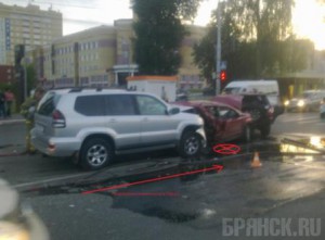 Авария на Кургане обошлась без жертв 29 июня в половине десятого вечера на улице Дуки-59, «Toyota Land Cruiser Prado», двигаясь со стороны гостиницы «Турист» в сторону улицы Крахмалева, не соблюла дистанцию и столкнулась со стоящим на запрещающий сигнал светофора «Nissan Note» под управлением 23-летней жительницы города Тула. После этого «Nissan Note» столкнулся с впереди стоящим автомобилем «Chery» под управлением 60-летнего местного жителя, который в свою очередь, столкнулся с впереди стоящей «Калиной». Медицинские работники осмотрели водителей и пассажиров автомобиля «Chery» и «Nissan», травм, требующих назначение лечения, не было обнаружено. Водители автомобилей – участников ДТП трезвы согласно проведенному медицинскому освидетельствованию в наркодиспансере. По факту ДТП сотрудниками полиции проводится проверка, сообщили газете БРЯНСК.RU в пресс-службе УГИБДД УМВД по Брянской области. БРЯНСК.RU