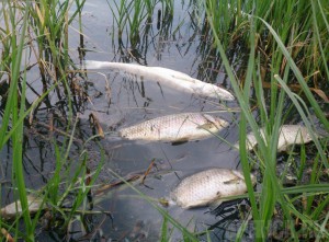 По факту гибели рыбы в Комаричском районе возбуждено дело В пруду поселка Лопандино Комаричского района произошла массовая гибель рыбы. Возбуждено уголовное дело по статье 250 «Загрязнение вод». Инцидент произошел в августе 2014 года – в результате загрязнения пруда вредными веществами, сообщили корреспонденту газеты БРЯНСК.RU в пресс-службе прокуратуры Брянской области. По предварительной оценке, ущерб, который был нанесен водным биологическим ресурсам и окружающей среде в целом, превысил 400 тысяч рублей. В настоящее время по факту загрязнения вод возбуждено уголовное дело. Санкция статьи предусматривает штраф (до 80 тысяч рублей), обязательные или исправительные работы, либо арест (на срок до трех месяцев). БРЯНСК.RU