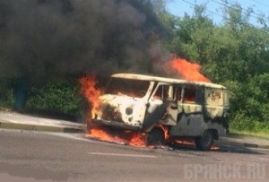 В Брянске на мосту сгорел автомобиль УАЗ Сообщение о том, что на мосту через реку Десну в Володарском районе Брянска полыхает машина, поступило в МЧС днем 26 мая текущего года. ЧП было зафиксировано примерно в 16.40. По указанному адресу выезжали семь пожарных, рассказали корреспонденту газеты БРЯНСК.RU в пресс-службе ГУ МЧС по Брянской области. Причину возгорания еще предстоит установить экспертам. Спасатели в очередной раз призывают брянцев быть внимательными и осторожными при обращении с огнем, просят соблюдать правила пожарной безопасности и требования при эксплуатации электроприборов. БРЯНСК.RU