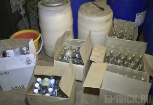 В частном доме работал мини-завод по производству самогона Недавно в полицию поступила информация, что в Бежицком районе Брянска, в частном доме, идет торговля поддельной спиртосодержащей продукцией. В ходе проверки информация подтвердилась. Как сообщили корреспонденту газеты БРЯНСК.RU в пресс-службе УМВД по Брянской области, сотрудники отдела организации применения административного законодательства изъяли 386 бутылок сомнительного алкоголя, продаваемого под видом известных брендов. Кроме того, там шла активная торговля самогоном. Стражи порядка изъяли 2 самогонных аппарата, 11 емкостей для самогона, более 1300 литров браги. Алкоголь отправлен на исследование. Не исключено, что спиртное может представлять опасность для жизни и здоровья. В отношении хозяина жилища возбуждено административное дело по статье «Незаконное использование средств индивидуализации товаров, работ и услуг». Санкция статьи предусматривает крупный штраф. Решается вопрос о возбуждении уголовного дела по статье 327.1 «Использование для маркировки алкогольной продукции заведомо поддельных акцизных марок». БРЯНСК.RU
