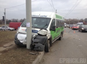 В Фокинском районе Брянска маршрутка влетела в столб 28 ноября 2014 года на проспекте Московском случилось дорожно-транспортное происшествие с участием маршрутного такси №47. Авария произошла в 10.45. По предварительной версии, 59-летняя женщина, сидевшая за рулем автомобиля «Нива», проехала на запрещающий сигнал светофора и столкнулась с микроавтобусом «Пежо», который следовал по маршруту №47. От столкновения 41-летний маршрутчик не справился с управлением и вырулил в электроопору. В итоге пострадали трое пассажиров «Пежо»: 60-летняя женщина получила разрыв сухожилия, 42-летний мужчина – ушиб поясничного отдела позвоночника, 49-летняя женщина – ушиб мягких тканей головы. Пострадавшие будут лечиться в домашних условиях. Как рассказали корреспонденту газеты БРЯНСК.RU в пресс-службе ОГИБДД по городу Брянску, всего в салоне микроавтобуса находились 15 человек. БРЯНСК.RU