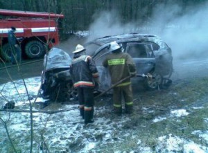 В Клинцах при столкновении загорелись две иномарки В результате ДТП вспыхнули автомобили «Ауди» и «Шевроле», при этом пострадал водитель первой иномарки. Авария произошла вчера вечером на улице Парковой. Мужчина, сидевший за рулем «Ауди», при обгоне выехал на встречную полосу, и в этот момент случилось столкновение с «Шевроле». От удара обе машины загорелись, однако к месту ДТП вовремя подоспели пожарные. Как рассказали корреспонденту газеты БРЯНСК.RU в пресс-службе УГИБДД по Брянской области, водитель «Ауди» получил закрытую черепно-мозговую травму, сотрясение головного мозга и ушибленную рану головы. Его госпитализировали. БРЯНСК.RU