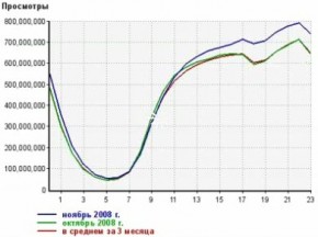 | Версия для печати Исследование TNS в очередной раз показало, что до людей с Интернетом сложно достучаться через телевизор. Люди, пользующиеся интернетом, в феврале 2009 г. проводили перед телевизором в среднем на час меньше, чем те, у кого доступа нет. Такова статистика TNS в среднем по России. Установочное исследование показало, что наличие интернет-доступа существенно влияет на поведение телезрителей, констатирует замдиректора «TNS Россия» по телеисследованиям Ксения Ачкасова. А разница в поведении общероссийской и московской аудиторий может быть связана с тем, что уровень проникновения интернета в Москве выше, чем в регионах, предполагает она. Заметно изменение (см. график) соотношения числа показов в центре (день) и справа (вечером). Пик посещаемости у интернет-ресурсов переместился с дневного времени на вечер, в некоторых категориях вечерняя посещаемость на несколько десятков процентов превышает дневную. Источник: