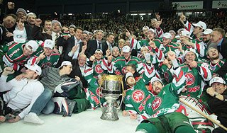 | Версия для печати Казанский "Ак Барс", обыграв со счетом 1:0 ярославский "Локомотив" в решающем, седьмом матче финальной серии чемпионата России по хоккею, стал первым обладателем Кубка Гагарина. "Золотой" победный гол, ставший единственным в этой решающей встрече, забил капитан "Ак Барса" нападающий Алексей Морозов.Автор золотого гола, форвард "Ак Барса" Алексей Морозов поделился своими впечатлениями о победе в первом розыгрыше Кубка Гагарина и считает, что у казанского клуба есть хорошие шансы побороться в следующем году в европейской Лиге чемпионов. "Для этого мы и работали весь сезон. Весь плей-офф для нас сложился тяжело, начиная с первой серии. Омск нам нервы хорошо потрепал, потом тяжелые игры с "Динамо" – соперники нам попадались хорошие. Наверное, наши болельщики не одну аптеку опустошили – было очень тяжело!", – цитирует капитана чемпионов "Советский Спорт". Главный тренер "Ак Барса" Зинэтула Билялетдинов, под руководством которых казанский клуб выиграл Кубок Гагарина, сравнялся с наставником магнитогорского "Металлурга" Валерием Белоусовым по количеству чемпионских титулов. По три раза эти наставники приводили свои команды к российскому чемпионству: Валерий Белоусов – в сезонах 1998/99 гг. и 2000/01 гг. с магнитогорским "Металлургом" и в 2003/04 гг. с омским "Авангардом"; Зинэтула Билялетдинов – в сезоне 1999/2000 гг. с московским "Динамо" и в сезонах 2005/06 гг. и 2008/09 гг. с казанским "Ак Барсом", сообщает "Чемпионат.ру". "Я очень счастлив, счастлив за ребят, за всю команду. Мы прошли очень сложный путь. Каждая игра плей-офф была сложной, но, конечно, особняком стоит игра с Омском, когда в пятом матче нам удалось на последней минуте перевести игру в овертайм и вырвать в нем победу. Я благодарю всех зрителей, которые поддерживали нашу команду. Я счастлив", – не скрывал эмоций Билялетдинов. Источник: