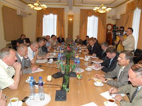 Губернатор встретился с председателем областной Думы В администрации области состоялась встреча Губернатора Н.В.Денина и его заместителей с председателем Брянской областной Думы В.И.Гайдуковым, его заместителями, председателями комитетов Думы. На встрече обсуждались текущие вопросы — по рассмотрению проекта бюджета на следующий плановый период, положение о почетном гражданине области, расширение списка получателей региональных льгот (кстати, решено этот вопрос рассматривать раз в год перед принятием областного бюджета), пояснили в пресс-службе областной администрации. Шла также речь и дополнительном лекарственном обеспечении, о строительстве Ледового дворца в Володарском районе Брянска, финансировании футбольного клуба «Динамо», программах энерго- и водосбережения. Затрагивался вопрос закрытия областной психиатрической больницы. Губернатор сообщил, что им уже дано поручение заместителю П.И.Белозору срочно найти необходимое помещение для размещения пациентов этой больницы. В конструктивном режиме были обсуждены некоторые вопросы повестки очередного, 45-го заседания Думы четвертого созыва, которое пройдет 26 июня. БРЯНСК.RU