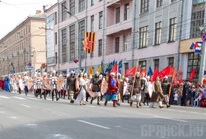 15 тысяч человек приняли участие в праздничном шествии В честь 1030-летия Брянска и 72-летия освобождения от фашистских захватчиков состоялось шествие под названием «Брянск – город древний, всегда молодой!» Были приготовлены театрализованные картины. По проспекту Ленина прошествовала дружина князя Романа Брянского, монах-воин Пересвет, ремесленники в традиционных русских костюмах. Затем зрители могли увидеть героев Петровской эпохи, пролистать страны Отечественной войны 1812 года, трех революций, Первой мировой и Гражданской войн, Великой Отечественной войны. Финалом «исторической» части стала «История в лицах». Организаторы напомнили брянцам о прославленных земляках: поэтах Ф. И. Тютчеве и А. К. Толстом, основателе Бежицы П. И. Губонине, меценатах братьях Могилевцевых и княгине М. К. Тенишевой, певице А. Вяльцевой и так далее. Затем от площади Ленина в сторону площади Партизан отправились представители всех четырех районов Брянска (по 1030 человек от каждого района). В составе колонн шагали юнармейцы, рабочие, представители учебных и спортивных заведений, медицинские работники. Затем к параду присоединились все желающие. По предварительной оценке, в праздничном шествии участие приняли почти 15 тысяч человек. БРЯНСК.RU