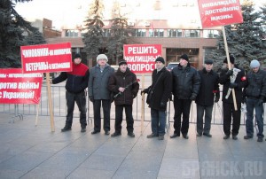 Бывшие воины-афганцы собрались на площади Ленина в Брянске – с плакатами «Чиновники – на иномарках, ветераны – в катафалках», «Инвалидам – достойную жизнь», «Решить жилищный вопрос».