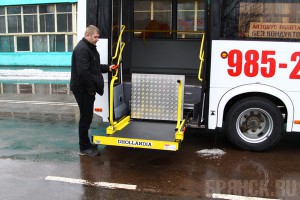 Еще один автобус оборудован подъемником для инвалидов В Брянске низкопольный автобус ПАЗ-320414 оснащен гидравлическим подъемником для инвалидов-колясочников – по программе «Доступная среда». «Движением пандуса при помощи пульта управляет водитель. Грузоподъемность такого устройства составляет 350 килограммов. Низкопольный автобус будет курсировать по маршрутам №№3, 20, 54. Узнать его можно по праздничному оформлению к 70-летию победы в Великой Отечественной войне», – рассказал корреспонденту газеты БРЯНСК.RU директор МУП Брянское городское пассажирское автотранспортное предприятие Александр Андросенко. По городу уже ездят три низкопольных автобуса – «ЛиАЗа». Они оборудованы специальными откидными площадками для заезда колясочников. Эти автобусы приобретены в рамках программы «Доступная среда». Их можно встретить на маршрутах №№2, 5, 27, 106. БРЯНСК.RU