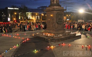 На Кургане Бессмертия зажглась «Звезда Победы» 9 мая 2015 года у стелы Воинской Славы была зажжена огромная звезда, выложенная из принесенных жителями Брянска свечей и лампад. Поставить свечи и лампады в контур символической звезды могли все желающие – в память о героях Великой Отечественной войны. Эта акция прошла в Брянске впервые. В ней приняли участие более 200 человек, рассказали корреспонденту газеты БРЯНСК.RU в пресс-службе Правительства Брянской области. Одним из гостей праздника стал старший мичман, председатель совета ветеранов Севастополя по культуре Николай Лавров. Он поздравил брянцев от имени жителей Севастополя. В тот же вечер хореографические коллективы Брянской области исполнили «Вальс Победы». Затем над Курганом вспыхнул праздничный фейерверк. Салюты прогремели и в других районах города. БРЯНСК.RU