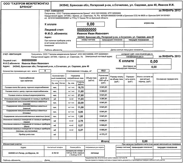 С февраля 2013 года введена новая форма квитанции за газ «Газпром межрегионгаз Брянск» информирует абонентов, что в соответствии с действующими Правилами предоставления коммунальных услуг собственникам и пользователям помещений в многоквартирных домах и жилых домов, утвержденными постановлением Правительства РФ № 354 от 6 мая 2011 г., с 2013 года водится новая форма счета-квитанции по оплате за природный газ. Теперь в квитанции розничная цена за газ будет указываться за 1000 м3 – это обязательное требование указанных Правил. При этом порядок расчета оплаты за поставленный газ и цена на газ с 1 января 2013 года не меняются. Розничные цены за газ из расчета за 1000 м3 на 2013 год утверждены постановлением Комитета государственного регулирования тарифов Брянской области от 28.12.2012 № 44/1-г. Образец счета-квитанции с 1 февраля 2013 годаБРЯНСК.RU