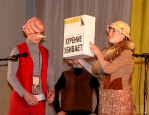 | Версия для печати На сцене Центра внешкольной работы города Брянска прошел фестиваль театрализованных постановок антинаркотической тематики «Игра о серьезном». «Мероприятии организовали, чтобы привлечь к пропаганде здорового образа жизни как можно больше школьников, донести до них пагубность вредных привычек, – рассказал заместитель начальника УФСКН Александр Сидоренко. – Первый такой фестиваль прошел в 2011 году и показал огромный интерес ребят к этой проблеме». В нынешнем мероприятии приняло участие 30 клубов по месту жительства, 12 из них были выбраны для финального этапа, который прошел в Центре внешкольной работы города Брянска. Среди актеров, которые со сцены пропагандировали здоровый образ жизни, оказались школьники города в возрасте от 8 до 16 лет. Буратино и Колобок, Василиса Премудрая и герои пушкинских сказок – все они на свой манер пытались доказать простую истину, что вредные привычки – плохо, здоровый образ жизни – хорошо. Юные артисты показывали пантомимы, читали стихотворные оды, исполняли песни, танцевали рэп. В итоге самыми убедительными в этом отношении оказались ребята из клуба «Орленок» Бежицкого района Брянска. Им и присудили первое место.