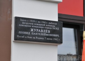 В Брянске увековечена память партизана Журавлева В Бежицком районе Брянска состоялся митинг, посвященный открытию мемориальной доски в честь Леонида Журавлева. Мероприятие состоялось 26 июня 2015 года возле дома №16 по улице Ульянова. Прежде в этом здании находилась пожарная часть. Когда пожарные переехали, мемориальная доска была утрачена. Теперь изготовлена новая доска в честь Леонида Пантелеймоновича. В торжественном митинге приняли участие школьники, ветераны Великой Отечественной войны, потомки Леонида Журавлева, рассказали корреспонденту газеты БРЯНСК.RU в пресс-службе ГУ МЧС по Брянской области. До Великой Отечественной войны Журавлев работал в пожарной части Бежицы. Позже он стал бойцом отряда Денисова. Почти год он воевал с оккупантами, был помощником командира отряда. В июне 1942 года Леонид Пантелеймонович погиб. БРЯНСК.RU