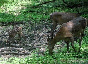 В новом сезоне в фотоловушку угодил первый олененок Это позволило работникам заповедника «Брянский лес» сделать вывод, что потомство у оленей в этом году появилось на свет довольно рано. Самка оленя пришла к водопою, да не одна, а со своим малышом. Ему – около недели от роду. «Пятнистая, так называемая покровительственная окраска, будет держаться еще несколько месяцев, – рассказала корреспонденту газеты БРЯНСК.RU заместитель директора по науке заповедника «Брянский лес Елена Ситникова. – С первой линькой внешность малышей начинает меняться. Через несколько месяцев олененок поменяет пятнистый наряд на светло-серый зимний мех». В поголовье оленей больше половины – это самки. Теоретически потомство у самки может быть ежегодно, но на практике случается по-разному. Поэтому посчитать число новорожденных в каждом году довольно-таки сложно. Но специалисты предполагают, что их число колеблется от 10 до 30. Малыши остаются с мамой в течение года, да и потом еще несколько лет далеко не уходят от материнского стада. БРЯНСК.RU