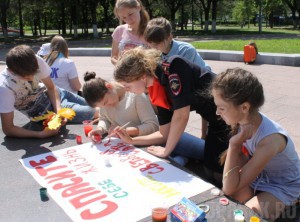 Юные брянцы призвали пешеходов быть внимательными на дороге Школьники вместе с автоинспекторами провели социальную акцию «Засветись!», цель которой – профилактика дорожно-транспортных происшествий. Дети, отдыхающие в загородном лагере Дубрава, приехали в Брянск, чтобы призвать прохожих к соблюдению Правил дорожного движения. На Кургане Бессмертия они разъясняли взрослым и детям, как нужно вести себя на дороге, а также вручали бумажных голубей, сделанных из световозвращающей бумаги – всего более 60 штук. Мальчики и девочки рассказывали, что с 1 июля 2015 года пешеходы обязаны использовать светоотражающие элементы (при движении в темное время суток по проезжей части вне населенных пунктов). Затем школьники нарисовали плакат с призывом соблюдать Правила дорожного движения. Они разметили его на остановке общественного транспорта, чтобы он был виден каждому прохожему и каждому проезжающему мимо водителю, рассказали корреспонденту газеты БРЯНСК.RU в пресс-службе УГИБДД по Брянской области. БРЯНСК.RU