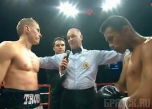 Трояновский нокаутировал Замбрано уже во втором раунде Брянский боксер Эдуард Трояновский победил колумбийца Луиса Замбрано и в третий раз защитил титул чемпиона PABA. Поединок, который состоялся в Crocus City Hall 17 мая 2013 года, завершился досрочно. В первом раунде 32-летний брянский боец отправил соперника в нокдаун, а во втором – ударом по корпусу – в нокаут. Напомним, изначально планировалось, что драться с Трояновским будет другой спортсмен – колумбиец Иван Эрнандез. Эдуард Трояновский уже в третий раз защитил титул чемпиона по версии Паназиатской Боксерской Ассоциации PABA, принадлежащий ему с 2012 года. Причем в 2013-м это была уже вторая защита. Напомним, 8 марта текущего года брянский боец выступил в Москве и победил спортсмена из Колумбии Орлена Падиллу. БРЯНСК.RU