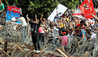 | Версия для печати Для разгона демонстрантов, собравшихся у здания министерства обороны в центре Каира, полиции пришлось применить слезоточивый газ. Активисты подошли вплотную к охраняющим здание военным и стали закидывать их камнями и металлической арматурой. В результате столкновений серьезно пострадали десятки гражданских лиц, а также несколько военнослужащих, число которых не уточняется. Сотни демонстрантов пришли в пятницу к Министерству обороны для участия в массовой акции протеста, получившей название "Пятница наступления". В свою очередь военные установили по периметру здания Минобороны металлические ограждения. Десятки военнослужащих размещены за заграждениями для обеспечения безопасности министерства. Им даны строгие указания сохранять хладнокровие и не реагировать на возможные провокации. Очередная волна беспорядков захлестнула Каир, когда на площади перед зданием Министерства обороны в Аббасии после пятничной молитвы собрались демонстранты. Начинавшийся мирно протест против управления страной военными перерос в ожесточенные стычки между военной полицией и участниками акции, к которым во второй половине дня присоединились сотни египтян, вышедших на демонстрацию на центральную площадь столицы Тахрир, сообщает ИТАР-ТАСС. В настоящее время столкновения продолжаются. Протестующие забрасывают стражей порядка камнями, бутылками с зажигательной смесью. Подобные беспорядки произошли в минувшую среду. Тогда, по разным данным, погибли от семи до 20 человек. Источник: