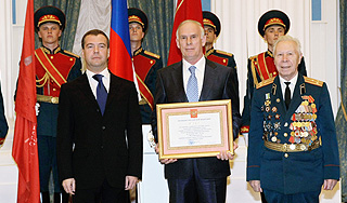 | Версия для печати Россия очень дорого заплатила за победу в Великой Отечественной войне, поэтому не позволит превращать этот праздник в разменную монету в политической игре, заявил президент Дмитрий Медведев. Вручая грамоты новым Городам воинской славы, глава государства призвал помнить подвиг каждого защитника Родины."Победа завоевывалась и в тылу врага, и на всей территории Советского Союза. Именно поэтому Города воинской славы будут специальным образом отмечены около нашего священного монумента – Могилы неизвестного солдата", - пообещал Медведев. Он напомнил, что жители СССР победили в самой жестокой войне XX века, спасли от фашизма свою страну и всю Европу, а также подарили всем будущее. "И наш долг - чтить и помнить подвиг каждого защитника Родины, всех, кто воевал в крупных сражениях и на безымянных высотах, кто на поле боя и в тылу приближал этот великий день", - приводит ПРАЙМ-ТАСС слова президента России. Он отметил, что в настоящее время история Великой Отечественной войны понимается по-разному и "существуют различного рода толкования, которые выходят за грань научных интерпретаций и, по сути, являются средством достижения политических целей". Российский лидер указал, что для противодействия этому принимаются специальные решения, которые должны увековечить память людей, погибших в борьбе с фашизмом. "Чтобы то, что было сделано, не приносилось в угоду политическим амбициям тех или иных руководителей, чтобы Победа не становилась разменной монетой в политической игре", - подчеркнул Дмитрий Медведев. По его словам, народ заплатил за окончание Великой Отечественной войны слишком высокую цену, чтобы можно было занимать по этому вопросу пассивную позицию. "И мы не будем ее занимать", - заверил президент. Дмитрий Медведев заявил, что страна всегда гордилась своими Городами-героями. "Но это ни в коей мере не может обесценить подвиг тех, кто сражался в других местах", - пояснил руководитель государства. Он отметил, что мужество и героизм были проявлены также при защите Волоколамска, Брянска, Нальчика, Выборга и Калача-на-Дону. За это им было присвоено звание "Городов воинской славы". "За свою долгую историю эти города неоднократно принимали на себя удары врагов. Это было и во времена набегов Золотой Орды, и в период Смуты, и в период Северной войны, и Отечественной войны (1812 года), а также в прошлом веке, во времена Великой Отечественной войны", - рассказал президент. Он уточнил, что под Волоколамском удалось остановить немецкую армию, двигавшуюся к Москве, сообщает РИА Новости. "Именно здесь впервые заговорили легендарные "катюши", а подвиг героев-панфиловцев навсегда стал подлинным символом мужества, самопожертвования", - напомнил Медведев. В Брянске было развернуто масштабное партизанское движение, названное Вторым боевым фронтом. Его участники ликвидировали 100 тысяч солдат и офицеров противника и взорвали свыше тысячи вражеских поездов. Говоря о Нальчике, президент России указал, что оборона столицы Кабардино-Балкарии стала примером истинного единения народов. "Во время масштабной боевой операции войска Закавказского фронта сорвали планы противника по захвату черноморских портов и нефтяных промыслов", - сообщил российский лидер. Он отметил и особое место Выборга в военной истории страны. В этом районе в 1944 году войска Ленин
