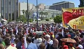 | Версия для печати В Греции началась двухдневная общенациональная забастовка. Закроются магазины, на работу не выйдут врачи и журналисты. Целые сутки не будут ходить поезда, встанут на якорь морские суда.Но хуже всего сложится ситуация с авиасообщением: улететь или прилететь в Грецию будет проблематично, а в среду и вовсе невозможно. Таков ответ греческих профсоюзов на жесткие антикризисные меры правительства. Чтобы получить кредиты от Евросоюза и МВФ, которые должен помочь стране рефинансировать 300-миллиардный долг, Греция обязалась сократить государственные расходы на десятки миллиардов евро, урезая зарплаты и повышая налоги, передает НТВ. Эти меры вызвали массовое недовольство у бюджетников, на уличные акции в Афинах вышли коммунальщики и военные. Последние устроили в столице марш протеста. А учителя пошли на крайние меры. Около 50 преподавателей, работающих по временным контрактам и опасающихся увольнения из-за введенных мер экономии, с боем прорвались в здание государственного телевидения, захватили студию и прервали выпуск новостей. Как передает РИА Новости, протестующие проникли в студию, где шла запись интервью с министром образования Анной Диамандопулу. Несколько человек также прервали выпуск новостей, шедший в прямом эфире. Около полутора часов телевидение передавало документальные фильмы и классическую музыку, прежде чем вещание восстановилось. Для этого бастующим разрешили зачитать в эфире свое заявление. В ходе инцидента серьезно пострадавших не было. В результате забастовщики покинули здание, а интервью с министром образования вышло примерно на 1,5 часа позже запланированного. "Правительство категорически осуждает вторжение в здание государственного ТВ и радио со стороны группы учителей, которые попытались продиктовать передачу нужных им новостей. Это не только нарушение закона, но и попытка подавить свободу СМИ", - сказал представитель правительства. В свою очередь государственный телерадиохолдинг ERT издал заявление, в котором признал, что передал в эфир требования бастующих, "чтобы обеспечить неприкосновенность людей, находившихся в студии". "Подобные действия мешают беспрепятственному информированию граждан, противоречат демократическим принципам диалога и законности", - говорится в заявлении государственного ТВ. Между тем в настоящее время около ста участников коммунистического профсоюза Всерабочий фронт борьбы устроили акцию протеста на афинском Акрополе. Коммунисты вывесили со "священной скалы" Акрополя два больших транспаранта с лозунгом: "Поднимайтесь, народы Европы!" на английском и греческом языках. Источник:
