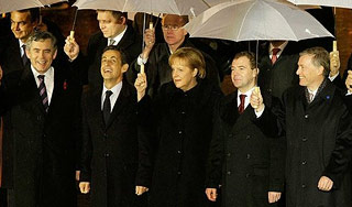 | Версия для печати В Берлине под всеобщее ликование немцев была разрушена полуторакилометровая символическая Берлинская стена, состоящая из тысячи двухметровых пенопластовых блоков, раскрашенных борцами за мир. Это событие стало кульминацией торжеств в день 20-летнего юбилея падения Берлинской стены, на которые по приглашению канцлера ФРГ Ангелы Меркель собрались лидеры 30 мировых держав.Накануне вечером на площади у Бранденбургских ворот, ставших символом падения Берлинской стены, с краткой речью выступили премьер-министр Великобритании Гордон Браун и президент России Дмитрий Медведев, президент Франции Николя Саркози и госсекретарь США Хилари Клинтон, представляющая в Берлине Соединенные Штаты, поскольку президент США Барак Обама в настоящее время находится в турне по странам Азии. Президент России Дмитрий Медведев в ходе торжественных мероприятий в Берлине отметил роль СССР в процессе воссоединения Германии. "Эта стена разделяла всю Европу", - подчеркнул Медведев, выступая перед тысячами людей у Бранденбургских ворот. По словам российского лидера, события двадцатилетней давности принесли Европе свободу и прогресс, сообщает "Немецкая волна". "Падение Берлинской стены привело к тому, что смогли объединиться семьи, не стало железного занавеса и границ. Ни СССР, ни ГДР уже нет на карте", - сказал Медведев. Эти события, по его словам, ознаменовали собой окончание эпохи конфронтации. Кроме того, в праздновании приняли участие экс-лидеры СССР и Польши Михаил Горбачев и Лех Валенса, а также бывший венгерский лидер Миклош Немеет, передает "Интерфакс". Кульминацией праздника стало падение символической стены из тысячи двухметровых раскрашенных пенопластовых блоков, которые были расставлены по принципу домино на протяжении полутора километров. После этого в Берлине начались праздничные концерты и гулянья, устраивались салюты и фейерверки. Несмотря на холодную погоду и дождь, тысячи европейцев приехали в столицу объединенной Германии, чтобы вместе с немцами отметить "Праздник свободы". Среди туристов, собравшихся у Бранденбургских ворот, были русские, испанцы, поляки, итальянцы, французы, англичане, а также представители других стран. Источник: