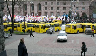 | Версия для печати Около двух тысяч человек в четверг перекрыли главную улицу Киева – Крещатик. Большинство митингующих требуют от мэрии, которая там находится, снижения тарифов на общественный транспорт, повышенных в ноябре в четыре раза. Однако есть и те, кто выступает за утверждение увеличенных тарифов. Часть участников акции протестует против повышения цен на проезд общественном транспорте и тарифов на жилищно-коммунальные услуги для юридических лиц, другие - в основном представители коммунальных транспортных предприятий - выступают в поддержку повышения тарифов на проезд. Как передает "Коммерсантъ", основная площадь перед мэрией заставлена желтыми автобусами коммунального предприятия "Киевпастранс". На ступенях перед входом в мэрию расположились представители коммунальных транспортных предприятий, которые проводят акцию в поддержку повышения тарифов на проезд. Они держат лозунги "Киевский метрополитен - на грани остановки", "Депутаты! Сохраните метро для киевлян", "Не принимайте бессмысленных решений". При этом транспортники высказывают свои требования через громкоговоритель, а водители микроавтобусов подают звуковые сигналы. Возле проезжей части улицы Крещатик, за стеной автобусов проводят свою акцию представители Блока Юлии Тимошенко и Коммунистической партии, которые выступают против повышения тарифов. Они держат лозунги: "Деятельность Киевской горадминистрации - геноцид против малого бизнеса!" , "Хлеб, транспорт, коммунальные услуги - что дальше?", "Малый бизнес - фундамент экономики!". Эта часть митингующих установила небольшую сцену для выступления, на которой три барабанщика бьют дробь, а это транслируется через звукоусилители. Как сообщает РИА "Новости", киевская горадминистрация издала распоряжение о повышении в четыре раза стоимости проезда в городском общественном транспорте и в метро с 4 ноября. Стоимость проезда выросла с 50 копеек – около двух с половиной рублей - до двух гривен. Антимонопольный комитет Украины заявил, что тарифы на транспорт должны быть снижены. Первый вице-премьер страны Александр Турчинов, по поручению которого проводилась правительственная проверка обоснованности увеличения транспортных тарифов, заявил, что они должны быть уменьшены вдвое - до одной гривны. Источник: Дни.ру