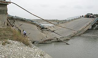 | Версия для печати В Калуге обрушился мост через реку Киевку. В результате инцидента отрезанным от остальной части города оказался целый микрорайон с населением около 20 тысяч человек."Под мостом протекает ливневая канализация. Она не справилась с объемом вод и частично обрушила мост", – пояснил представитель городской управы. По его словам, обрушенной оказалась пешеходная зона, левая полоса дорожного покрытия и внутренняя часть моста. Сообщается, что пострадавших нет, передает "Интерфакс". Движение по данному участку дороги перекрыто – трасса закрыта со стороны города от Пожарной части №1 по улице Тульской и со стороны микрорайона Турынино от разводки на окружную дорогу Калуги. Частично отрезанным от остальной части города оказался отдаленный микрорайон Турынино с населением примерно в 20 тысяч человек. Попасть в микрорайон сейчас можно только по окружной дороге. Сотрудники Госавтоинспекции информируют участников движения о возможных объездных путях. На месте происшествия работают оперативные службы. "Теперь мост должны обследовать специалисты, и будет принято решение о дальнейших действиях. Дело осложняется тем, что под мостом проходят коммуникации, возможно, их придется выносить наверх", – отметил сотрудник пресс-службы. Источник: