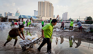 | Версия для печати Власти Бангкока в качестве меры борьбы с разрушительным наводнением рассматривают подрыв магистралей и превращение их в каналы, через которые вода уйдет в Сиамский залив. Между тем население отказывается эвакуироваться из-за угрозы мародерства.Специалисты выяснили, что пять шоссейных дорог из-за высоких насыпей блокируют отток воды в каналы и в море в восточных пригородах столицы. Группа инженеров предложила правительству проделать поперек них с помощью взрывчатки шестиметровые "каналы", чтобы облегчить отток воды в Сиамский залив, минуя центр города. Согласно проекту, работа на всех пяти дорогах займет не более двух часов, а на образовавшиеся разрывы будут наложены временные металлические мосты по типу используемых в армии для переправы техники через водные преграды. "Таким образом, практически не прерывая движения по этим дорогам, мы направим воду в обход Бангкока и заодно высушим и несколько восточных пригородов, оказавшихся под водой, и поможем осушить север пригородной зоны Бангкока", – сказали инженеры. Кабинет министров рассмотрит это предложение вечером, после подробного ознакомления с проектом специалистов. Тем временем вода прорвала дамбу в канале Пра Кханонг в Бангкоке. Река Чаопрайя пробила десятиметровую брешь в бетонном заграждении набережной в районе двух переулков центральной улицы Сукхумвит, на границе делового центра города. Глава администрации района Клонгтэй, к которому относится затопленный участок, заявила, что работы по устранению бреши уже ведутся. За последние три дня река Чаопрайя уже трижды пробивала бреши в заграждениях в центральной части Бангкока. Во всех случаях городские власти и военные за четыре-пять часов устраняли пробоины, забивая их мешками с песком и заливая цементом основание барьера. Жители в спешке покидают город. Массовый исход из мегаполиса привел к заторам на дорогах и столпотворению в международном аэропорту: все ближайшие рейсы раскуплены. Железнодорожное сообщение в Бангкоке прервано наводнением. Автовокзалы переполнены, а объездные дороги полностью забиты транспортом, сообщает РИА Новости. Тем не менее, по сведениям бангкокской полиции, из многомиллионного города до сих пор выехало не более 20% населения. Многие жители отказываются эвакуироваться из-за угрозы мародерства, обострившейся в последнее время. В этой связи мэр Бангкока повторил предупреждение об эвакуации для жителей 13 районов. В посольстве России предупреждают, что пик наводнения ожидается в выходные. "Масса воды скопилась к северу от столицы, отдельные районы которой частично подтоплены, как, к примеру, район Хунбури, расположенный напротив Королевского дворца. К этому добавился еще и морской прилив. Из Сиамского залива в реку Чаопрая, протекающую через Бангкок, также движется вода. Если еще начнутся дожди, то тогда вся эта масса воды двинется на город", – цитирует НТВ представителя посольства России в Таиланде Андрея Дворникова. Тем не менее разлива реки в черте города до сих пор не произошло. Также, по словам очевидцев, вода с северных окраин замедлила свое движение в сторону центра города. Отметим, что, по последним данным, жертвами самого разрушительного за полвека наводнения стали уже более 370 человек. Ущерб оценивают в 30 миллиардов долларов. Источник: