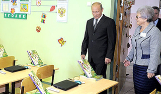 | Версия для печати Премьер-министр России Владимир Путин посетил в День знаний самую новую школу Подольска, где его удивили ноутбуки для первоклассников. Учителя рассказали главе правительства о новом смысле классических фраз "иди к доске" и "сдайте тетради".Средняя школа №29, открытая 1 сентября 2000 года, имеет естественно-научный уклон. Многие кабинеты оборудованы мультимедийными комплексами, интерактивными досками. Уроки проводятся на базе компьютерных презентаций и 3D-фильмов. В кабинете начальных классов главу правительства очень удивило оборудование на школьных партах – микроскопы и ноутбуки. "Вы малышей будете учить на этом?" – указал он на компьютеры. "Почему бы и нет, – ответила учительница Анна Троицкая. – Они больше нас знают. Я сегодня провела опрос, кто умеет пользоваться компьютером, – из 29 человек 15 подняли руки". В 2009 году в школе начался эксперимент по внедрению в образовательный процесс интернет-технологий. Ученики старших экспериментальных классов вместо учебников, рабочих тетрадей и дневников ходят в школу с одним лишь специализированным ноутбуком – "электронным портфелем", сообщает РИА Новости. Ноутбуки покупают родители, отдавшие своих детей в экспериментальный класс. Оборудование стоит около 16 тысяч рублей, однако, по словам педагогов, с каждым годом становится все доступнее. "Учитель видит всех. Фраза "иди к доске" буквально означает вывод на интерактивную доску рабочего места конкретного ребенка", – объяснил принцип работы с таким оборудованием учитель физики Игорь Царьков. Кроме того, предусмотрена возможность электронного тестирования, каждый урок начинается с большой лабораторной работы. "Я вижу процент, кто знает первый, второй, третий вопросы. Кто готов, кто не готов к уроку. А любимая фраза "сдайте тетради" теперь означает "перешлите файл на сервер школы", – объяснил алгоритм проверки знаний преподаватель. Во время урока естествознания премьер-министр высказал мнение, что систему поступления в вузы необходимо совершенствовать, чтобы избежать скандалов, подобных тем, что были в этом году. "Над созданием законов думают сотни и тысячи людей, а как их обойти – думают миллионы, – шутливо заметил Путин. – Но это не аргумент, чтобы ничего не менять. Правила будут совершенствоваться". В ходе посещения подольской школы Путин ответил на вопросы учеников. Один из 11-классников поинтересовался у главы правительства, есть ли методы контроля информации. "Контроль всегда можно наладить, но вопрос не в контроле, а в том, имеет ли государство право вмешиваться", – ответил премьер. По его мнению, в современном мире "нельзя ничего ограничивать, нужно просто на этой же поляне работать более эффективно". В качестве примера Путин привел распространение в Интернете материалов с детской порнографией или "о негативных политических призывах". "Перекрыть это невозможно, нужно просто создавать у людей понимание, формировать внутреннее неприятие явлений подобного рода", – подчеркнул Путин. 1 сентября глава российского правительства поздравил учителей, преподавателей, школьников и студентов России с Днем знаний и началом нового учебного года. "Этот замечательный праздник дорог всем поколениям граждан нашей страны. Светлые воспоминания о школьных и студенческих годах, о любимых учителях и верных друзьях навсегда оста