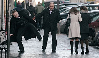 | Версия для печати Около 200 москвичей за минувшие сутки получили травмы на улицах города в связи с гололедицей, большинство из них попали в больницу. Синоптики и МЧС предупреждают, что наряду со скользкими дорогами жителей и гостей столицы ждет еще более серьезная напасть – дальнейшее похолодание и штормовой ветер."Около 200 человек позвонили в "скорую помощь" в связи с повреждениями, полученными из-за гололеда. Всем им была оказана оперативная медицинская помощь", – сообщили РИА Новости в медицинской службе. По данным "Интерфакса", в 125 случаях пострадавших пришлось госпитализировать. Больше всего обращений к медикам из-за травм на улицах было зарегистрировано в Центральном, Восточном и Северо-Восточном административных округах города. По прогнозам синоптиков, появившаяся на дорогах и тротуарах Москвы гололедица окончательно исчезнет только в понедельник. "Гололедица начнет разрушаться в воскресенье, именно в этот день дневная температура превысит нулевые значения, однако ее окончательного исчезновения можно ожидать в понедельник, когда воздух прогреется до плюс четырех градусов", – сообщили специалисты центра погоды "Фобос". Между тем непогода в столице грозит новыми неприятностями. "В Москве ожидаются порывы ветра, которые могут достигать 12-17 метров в секунду, в результате чего возможно повреждение линий электропередачи, обрывы абонентских телефонных линий, а также падение деревьев и рекламных щитов", – сообщает пресс-служба управления МЧС России по Москве. В результате возможны заторы на дорогах, повреждения автотранспорта и обрушения слабо укрепленных конструкций. Напомним, что погода в Москве резко ухудшилась накануне днем. В столичном регионе было объявлено штормовое предупреждение. Порывы ветра достигали скорости 15-20 метров в секунду. В городе пошел снег, который сопровождался резким понижением температуры. Отрицательная температура моментально сковала льдом обширные лужи, образовавшиеся из-за таяния снега. Источник: