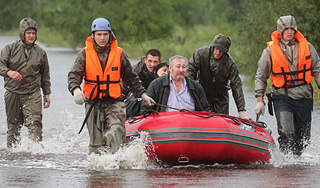 | Версия для печати Президент России Владимир Путин распорядился существенно увеличить объем помощи жителям, проживающим в пострадавших от паводка регионах Дальнего Востока. В связи этим крупнейшая энергетическая компания "РусГидро" выделит 100 миллионов рублей для выплат компенсации пострадавшим гражданам. "Президент России Владимир Путин дал указание министру энергетики Александру Новаку и председателю правления ОАО "РусГидро" Евгению Доду вылететь в Благовещенск. Евгений Дод доложил, что "РусГидро" немедленно выделяет 100 миллионов рублей с целью выплаты компенсации пострадавшим от наводнения", – сообщили в пресс-службе Кремля. Кроме того, заслушав доклад губернатора Амурской области Олега Кожемяко о ситуации в регионе, российский лидер потребовал от руководителей федеральных структур обеспечить скоординированные действия с главами регионов, охваченных паводком и наводнениями, передает ИТАР-ТАСС. Путин поручил главам МЧС и Минобороны Владимиру Пучкову и Сергею Шойгу усилить группировки и направить в пострадавшие от паводков районы дополнительные силы и средства. Министру здравоохранения Веронике Скворцовой глава государства приказал принять "все возможные меры для оказания своевременной медицинской помощи населению в районах подтопления, удерживания в норме санитарно-эпидемиологической обстановки". Напомним, режим чрезвычайной ситуации из-за паводка введен в пяти регионах Дальнего Востока – Якутии, Приморском крае, Хабаровском крае, Амурской области и Еврейской автономной области. Затоплены сотни домов, участки дорог, сенокосы, пастбища, сельхозполя. Из подтопленных районов эвакуировано население. В одной только Амурской области подтоплено 56 поселений, пострадало более четырех тысяч жилых домов, размыты 307 километров дорог. МЧС готовится к пику паводка, который ожидается с 18 по 23 августа. Он может на 880-930 сантиметров превысить "нейтральный" уровень воды в Амуре. Источник: