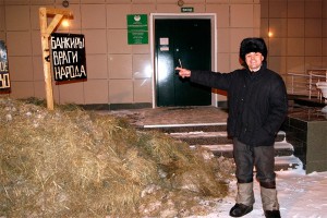 Российский фермер оплатил кредит навозом13 февраля 2015, пятница, 11:30 – БРЯНСК.RU | | Версия для печати Прохожие и сотрудники Куйбышевского отделения Сбербанка могли наблюдать и буквально ощущать достаточно непривычную для города картину – большие навозные кучи, горделиво возлежащие прямо напротив дверей в офис кредитной организации. Таким образом фермер из Куйбышевского района хотел привлечь внимание к своей проблеме.Акционист и художник, по оценкам одних, и банальный хулиган, по оценкам других, по его собственному признанию вывалил телегу навоза в знак протеста против политики, которую проводят российские банки в отношении сельскохозяйственных производителей и всех граждан России. На кучи навоза мужчина установил две модели виселицы, которые послужили не только символом народного недовольства, но и держателем для транспарантов. На одном из них было написано "Долой кредитное рабство", а на втором – "Банкиры – враги народа". У фермера вызвала недоумение реакция охраны офиса Сбербанка, который он выбрал в качестве трибуны для своего выступления. Точнее, отсутствие таковой. "Странно это. Я вот трактор с телегой навоза подогнал, выгрузил его, плакаты поставил рядом с банковскими дверями, интервью раздаю... Это в течение часа происходит. Или даже дольше. А никто из охраны банка так и не вышел, не поинтересовался, что тут делается. Спят, наверное... Или бухают", – сказал фермер в интервью местному порталу "Провинциальная Сибирь". "С такой работой охраны запросто может кто-нибудь тот же трактор к дверям подогнать, трос к входным дверям привязать и вынести их к чертовой матери. Вот так работнички", – заключил мужчина, сдобрив комментарий парой крепких слов. Местные сотрудники правоохранительных органов, к слову, уже начали проверку по факту произошедшего. "Сегодня около 07:00 в Межмуниципальный отдел МВД России "Куйбышевский" от сотрудника отделения одного из финансовых учреждений поступило сообщение, о том, что неизвестный перед входом в здание высыпал телегу с навозом. В настоящее время по данному факту сотрудники полиции проводят проверку", – сообщает Главного управления МВД России по Новосибирской области. При этом мужчина пока не задержан, уточнили в полиции. Фермер утверждает, что кучи навоза – это его плата за кредит. Ведь, согласно закону, должник отвечает перед кредитором всем своим имуществом, вот мужчина и решил расплатиться тем, что у него есть. Акция продлилась около часа, после чего фермер просто забрал свои плакаты и ушел домой, оставив "оплату" лежать перед крыльцом банка. Одни пользователи Сети охотно поддержали начинания фермера и признались, что помогли бы протестующему, окажись рядом с ним. Другие одобряют благородный порыв мужчины привлечь широкое общественное внимание к проблеме, однако не разделяют его методы. По их словам, этого добра в городе и так достаточно, незачем его подвозить на телегах дополнительно. Источник: