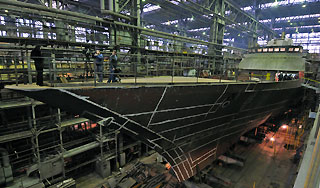 | Версия для печати Россия должна совершить качественный рывок в военном кораблестроении, заявил премьер-министр России Владимир Путин. Глава правительства поручил в сжатые сроки разработать долгосрочную программу развития отрасли на 30-летнюю перспективу."В военном кораблестроении нужно совершать качественный рывок, поэтому абсолютно необходимо в самые сжатые сроки разработать долгосрочную программу его развития", - заявил Путин на совещании по вопросам оборонно-промышленного комплекса в пятницу. "Она должна опираться на объективные потребности флота. Учитывать задачи, которые перед ним стоят сегодня или на базе прогноза возникнут в перспективе 30 лет. Это как минимум", - добавил глава правительства. По словам премьера, Россия должна усилить судостроение и сделать основной акцент на серийном производстве гражданских и военных судов. "Основной акцент надо сделать на выпуске серийной техники. Только так мы сможем добиться, чтобы бюджетные средства действительно приносили пользу, а не распылялись между многочисленными, но часто неэффективными проектами", - отметил председатель российского правительства. В этой связи Путин поручил Минпромторгу совместно с Минобороны оптимально загрузить входящие в Объединенную судостроительную корпорацию верфи и заводы военной и гражданской продукцией. Кроме того, премьер заявил о необходимости проводить техническое перевооружение отечественных предприятий под конкретные заказы. Как сообщает "Интерфакс, делегация Минобороны Франции во главе с генеральным инженером по вооружению Аленом Костом ознакомилась со строительством вертолетоносцев "Мистраль" на Балтийском заводе. "Нет ничего плохого в том, что наши корабелы используют импортные технологии и комплектующие. Но в перспективе нужно создавать отечественную компонентую базу, что позволит дополнительно загрузить смежные отрасли промышленности", - цитирует Путина РИА Новости. Чтобы лично убедиться в нынешнем состоянии дел в отечественном кораблестроении, премьер посетил Адмиралтейские верфи в Санкт-Петербурге и ознакомился с производством дизельных электрических подводных лодок нового поколения, а также принял участие в торжественной церемонии пуска на воду нового арктического челночного танкера "Кирилл Лавров". Источник: