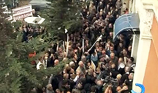 | Версия для печати Грузинский спецназ устроил погром в офисе оппозиционеров в ночь на воскресенье. Спецназовцы ворвались в штаб-квартиру общественной организации "Народное собрание" в Батуми.Член исполнительного комитета "Народного собрания" Темур Шашиашвили заявил, что в результате десять человек с различными травмами были госпитализированы, еще троим была оказана медицинская помощь, десятки оппозиционеров были задержаны, пишет "Московский комсомолец". "В офисе были жестоко избиты наши активисты. Наш ответ властям – мы начнем действовать, – заявила, в свою очередь, одна из лидеров общественной организации "Народное собрание" Нино Бурджанадзе. – На акцию в Тбилиси перед Общественным телевидением должны прийти все любящие свою страну граждане, а если не придут, то будут действовать те, кто сейчас находится здесь. Несмотря на погром в Батуми, мы продолжим борьбу и не отступим ни на один шаг". Ранним утром 22 мая представители грузинской полиции разогнали группу сторонников оппозиции, принимавших участие в акции у здания Общественного телевидения Грузии. "Разгон произошел на рассвете, около семи утра... Полиция разогнала сторонников оппозиции у Общественного телевидения. В ходе разгона пострадала женщина", – сказала представитель пресс-службы партии "Демократическое движение – Единая Грузия" Хатуна Иваниашвили. По ее словам, сейчас люди снова собираются на акцию протеста у Общественного телевидения. Одна из местных телекомпаний утром в воскресенье показала кадры, как группа сторонников оппозиции, около 15 человек, набросилась на машину, которая стояла неподалеку от места проведения акции у Общественного телевидения. В руках митингующие держали пластиковые трубы, которые они ранее использовали как флагштоки. Как утверждали митингующие, в этой машине находились полицейские, которые следили за акцией. После того как митингующие стали бить трубами по машине, в которой находились люди, и открывать в ней двери, автомобиль уехал. Но после инцидента из здания отделения полиции, расположенного рядом с телевидением, вышли полицейские. В ходе разгона были применены слезоточивый газ и резиновые пули, сообщает РИА Новости. На кадрах видно, как участники нападения на машину разбежались, не вступив в стычку с блюстителями порядка. По предварительной информации, женщина – сторонница оппозиции, пострадала от случайно попавшей в нее резиновой пули. "Этот разгон демонстрантов не сможет напугать народ. Власть не сможет напугать народ газом и резиновыми пулями. Очень скоро сюда придет много людей, и власти придется ответить перед народом", – сказал один из лидеров "Народного собрания" Ираклий Батиашвили, который после разгона оппозиции приехал к Общественному телевидению. Со вчерашнего дня митингующие блокируют автомобильное движение у здания Общественного телевидения, разместив на дороге щиты с надписью "Миша, Миша!" и перетянув поперек проезжей части железные цепи. К утру воскресенья у здания телевидения оставалась небольшая – до 100 человек – группа сторонников оппозиции. Там же находится и передвижная сцена с динамиками, которую оппозиция накануне использовала на площади Свободы, где началась акция протеста. Позже сцену переместили к зданию Общественного телевидения. Накануне вечером председатель "Народного собрания", экс-че
