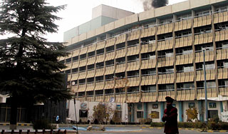 | Версия для печати Министерство внутренних дел Афганистана объявило об уничтожении всех террористов, совершивших накануне нападение на крупный кабульский отель Intercontinental. В результате атаки убиты более десяти человек, есть раненые."Нападение началось во вторник в 23:10 по местному времени. Три террориста-смертника под прикрытием огня других боевиков взорвали на себе "жилеты смертника" у входной двери в отель и на первом этаже гостиницы, рядом с регистрационной стойкой", – сказал начальник сил безопасности полиции провинции Кабул Мохаммад Айюб Саланги. Атака на отель и операция против террористов продолжались около пяти часов. Сообщается о ранении троих полицейских, передает РИА Новости. По словам очевидца, взрывы прогремели, когда множество людей ужинали в ресторане отеля. После этого прогремели еще два взрыва. Силы безопасности вступили в бой с напавшими на отель, которые вели огонь из автоматов и гранатометов. В операции против укрывшихся на крыше отеля экстремистов участвовали вертолеты НАТО. Вертолеты выпустили как минимум одну ракету. "Бой шел более четырех часов. Подтянувшиеся к месту инцидента спецподразделения полиции сумели уничтожить всех нападавших. В настоящее время криминалисты работают на месте террористического нападения, выясняя, кто среди убитых мирные жители, а кто – террористы. Все раненые были доставлены в кабульские госпитали", – констатировал Саланги. Он добавил, что 12 человек, по последним данным, погибли, шесть получили ранения. В свою очередь глава криминальной полиции Кабула Мохаммад Захир уточнил, что число граждан Афганистана, ставших жертвами теракта, не менее десяти. Ответственность за нападение взяло на себя движение "Талибан". Отель расположен в западной части Кабула и является одним из двух основных отелей, в которых останавливаются иностранцы. По свидетельству очевидцев происшествия, к утру среды все постояльцы Intercontinental спешно покинули отель, окруженный силами полиции и армейскими подразделениями. Источник: