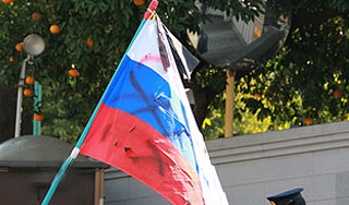 | Версия для печати Япония отказалась уголовно преследовать радикалов, осквернивших российский флаг в "День северных территорий" 7 февраля. Кроме того, официальный Токио не признает факт блокирования манифестантами посольства России в этот же день."Официально японский МИД дал ответ, ссылаясь на мнение полиции. Японская полиция не усматривает в видеоматериалах, переданных нами, признаков состава преступления, предусмотренного статьей 92", – сказали в посольстве России. Как пояснили дипломаты, Япония считает, что ультраправые надругались не над российским символом, а над "самодельным предметом", похожим на флаг. "Японская сторона рассматривала бы этот предмет как флаг только в том случае, если бы он был снят с нашего флагштока. Тогда, по их мнению, это было бы преступлением", – пояснил собеседник РИА Новости. Между тем, в российском посольстве полагают, что флаг был куплен и изготовлен промышленным способом. "Это действительно флаг России. Мы взяли ноту японского МИД технически, но отказались воспринимать их ответ по существу", – добавил дипломат. Он также заметил, что японские власти не признают факт блокирования посольства России в "День северных территорий". Между тем, по его словам, 7 февраля у ворот посольства прошло 14 пикетирований японских радикалов – каждое по 20-30 минут, и все это время вход в посольство блокировался. Как писали Дни.Ру, группы радикально настроенной молодежи, отмечая 7 февраля "День северных территорий", пришли к посольству России с изорванным и исписанным российским флагом, а затем "подмели" им тротуар. Российская дипмиссия передала в японский МИД ноту протеста в связи с этим инцидентом. Японской стороне были также переданы видеоматериалы, свидетельствующие о факте осквернения флага. Источник: