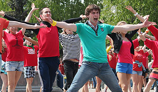 | Версия для печати Самый массовый и яркий танцевальный флэшмоб в Сибири собрал более двух тысяч человек. Они станцевали одновременно в девяти городах России.Жители Иркутска, Абакана, Новосибирска, Омска, Красноярска, Кемерово, Кызыла, Томска и Горно-Алтайска устроили "Флэшмоб по-русски-2". Уникальная танцевальная акция проходила в Сибири с 3 по 12 июня 2013 года и носила название "Сибирский хоровод-2013". За время проведения акции сотни молодых людей из девяти городов Сибири станцевали под русскую народную песню "Не восход солнца" в современной обработке. В музыкальной композиции, под которую исполнили сибиряки, использованы мотивы тувинской, хакасской и алтайской народной музыки. Начиная с 3 июня во всех городах-участниках были проведены репетиции и предварительные съемки. Для того чтобы зафиксировать "Сибирский хоровод-2013", работали 36 операторов в составе шести специально созданных съемочных групп. Кульминация акции состоялась в День России 12 июня в 12:00 по московскому времени, когда 2280 человек одновременно закружились в хороводе на площадях Иркутска, Кемерово, Кызыла, Томска, Абакана, Омска, Горно-Алтайска, Красноярска и Новосибирска. Стоит отметить, что танцевальная акция "Сибирский хоровод-2013" стала продолжением "Флэшмоба по-русски", когда в Новосибирске на площади у Оперного театра под песню "Не восход солнца" в исполнении Сибирского государственного академического хора станцевали почти 500 молодых людей. Исполнили русский народный танец молодые люди сразу нескольких коллективов города, студенты Театрального института и артисты Сибирского хора. Как уверяют организаторы акции, в ней даже принял участие настоящий экипаж ДПС. Источник: