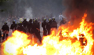 | Версия для печати В Болгарии третьи сутки проходят многотысячные антицыганские выступления, местами переходящие в погромы. Полиция задержала уже более сотни протестующих. Поводом для волнений стала гибель подростка, сбитого автомобилем цыганского барона.В ночь на вторник антицыганские выступления затронули сразу несколько болгарских городов. В частности, в акциях протеста в Пловдиве приняли участие около трех тысяч человек, еще около тысячи вышли на улицы столицы страны Софии и Варны, сообщает РИА Новости. По данным правоохранительных органов, в Пловдиве, Плевене, Варне, Бургасе и Софии протестующие, в числе которых были также футбольные фанаты и праворадикалы, пытались совершить нападения на места компактного проживания цыган и вступали в стычки с полицией и жандармерией. В этих столкновениях участвовали даже женщины и подростки. В Софии во время беспорядков были ранены двое полицейских. По данным местной прессы, по всей Болгарии представители цыганских общин в ожидании возможных погромов в целях самообороны спешно запасаются дубинками, топорами и огнестрельным оружием. Инцидент, вызвавший волнения в Болгарии, произошел в конце минувшей недели. В расположенной на юге страны деревне Катуница 19-летний местный житель погиб в ДТП под колесами микроавтобуса, принадлежащего местному цыганскому барону Кириллу Рашкову по прозвищу "Царь Киро". За рулем автомобиля оказался один из приближенных цыганского авторитета. Перед домом барона собралось более полутысячи жителей деревни, которые требовали от Рашкова вместе с семьей покинуть деревню. Во второй половине дня в воскресенье к беспорядкам присоединились несколько сотен футбольных фанатов, специально прибывших в Катуницу из Пловдива. Толпа начала бить автомобили и забрасывать принадлежащие семье Рашкова дома камнями и бутылками с зажигательной смесью. В трех домах начался пожар. По данным полиции, в ходе беспорядков от сердечного приступа скончался подросток. Пять человек, из них три сотрудника полиции, получили ранения. За участие в воскресных беспорядках были задержаны более 125 человек, 28 из них были предъявлены обвинения в хулиганстве. Источник: