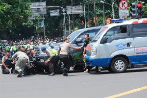 В Джакарте скопировали парижские теракты14 января 2016, четверг, 12:44 – БРЯНСК.RU | | Версия для печати Полиция Индонезии считает, что атаки на столицу страны перекликаются с ноябрьскими событиями в Париже. В Джакарту введена бронетехника, в районе происшествия продолжаются перестрелки между террористами и полицией. Согласно последним данным, число жертв выросло до 17 , часть из них – нападавшие. Также сообщается о погибшем полицейском. Четверо преступников ликвидированы, еще четверо задержаны спецслужбами, передают местные СМИ. В серии взрывов возле торгового комплекса граждане России не пострадали. На улицах столицы Индонезии спешно закрылись все магазины и учреждения. Сеть Starbucks закрыла свои кафе, после того как в результате нападения был ранен один из посетителей. По сведениям полиции, к атакам причастна группа из 10-14 боевиков, в том числе смертники. Ни одна из группировок пока не взяла на себя ответственность за случившееся. Напомним, что первые взрывы прогремели около 07:00 мск рядом с крупным торговым центром и зданием Организации Объединенных Наций. В этом районе также находится много отелей, посольств и офисных зданий. Известно в общей сложности о восьми взрывах. Президент Индонезии Джоко Видодо охарактеризовал произошедшее как теракт. "Наша нация и наш народ не должны бояться, акты терроризма нас не победят. Я надеюсь, что общество останется спокойным. Мы все сожалеем о погибших, но осуждаем то, что нарушило нашу безопасность и мир, распространило страх среди людей", – заявил он. Источник: