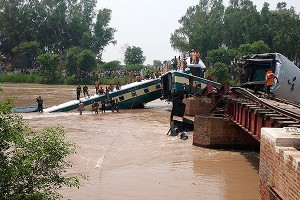 В Пакистане поезд с военными упал в реку2 июля 2015, четверг, 16:30 – БРЯНСК.RU | | Версия для печати В Пакистане, в округе Гуджранвале, четыре вагона пассажирского поезда, в которых находились несколько сотен пассажиров, упали в реку, сообщает DAWN. В результате инцидента погибли 12 человек. На место происшествия из города Лахора были направлены спасатели и врачи. Им помогают местные жители и военные. По последним данным, из воды удалось извлечь около 80 человек. Однако в затопленных вагонах все еще остаются люди. Трагедия произошла на ветхом железнодорожном мосту: он не выдержал нагрузки и рухнул. Видео страшного инцидента, сделанное местными телеканалами, потрясло мир. Большинство пассажиров упавших вагонов – военные. Среди погибших есть и командир подразделения. Военнослужащие ехали в Пано Акил для проведения учений. В связи с трагедией движение на данном направлении прекращено. Премьер-министр страны Наваз Шариф выразил обеспокоенность произошедшей аварией и поручил мобилизовать все ресурсы для спасения раненых и восстановления железнодорожных путей. Тем временем министр железнодорожного транспорта Хаваджа Саада Рафик заявил, что не исключает того, что трагедия была подстроена. Источник: