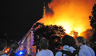 | Версия для печати В самом центре латвийской столицы всю ночь горел Рижский замок, в котором расположены музеи и резиденция президента страны. Пожару присвоили высшую степень опасности. На борьбу с ним были брошены все силы. Министр культуры Латвии Жанета Яунземе-Гренде, желая убедиться в сохранности экспозиций, не побоялась зайти в горящее здание. В настоящее время пламя, которое уничтожило более трех тысяч квадратных метров площади, локализовано. "Уничтожено более 3,2 тысячи квадратных метров площади", – сказала пресс-секретарь Государственной пожарно-спасательной службы (ГПСС) Виктория Шембеле. По ее словам, больше всего пострадала крыша здания – выгорело около 2,4 тысячи квадратных метров. На четвертом этаже здания уничтожено 600 квадратных метров площади, а на третьем – около 200 квадратных метров, сообщает РИА Новости. Сообщение о возгорании в резиденции президента страны в центре Риги поступило вечером 20 июня. Пожару была присвоена высшая степень опасности, так как здание находится в центре города рядом с жилыми домами, пишут "Вести.Ru". К тушению, помимо десяти пожарных расчетов из столицы, были привлечены спасательные отряды из Юрмалы. В ликвидации огня задействовали также вертолет Национальных вооруженных сил Латвии и буксир Рижского свободного порта. Ситуация осложнялась нехваткой воды, которая была доступна только из автоцистерн. Полиция перекрыла близлежащие улицы. Следует отметить, что при тушении пожара пострадал один спасатель, который отравился угарным газом. По факту произошедшего возбуждено уголовное дело, передает ИТАР-ТАСС. Существенный ущерб был нанесен Латвийскому музею истории, который находится в здании Рижского замка. Часть ценных музейных экспонатов успели накрыть пленкой, чтобы уберечь их при тушении огня от воды, остальные могли пострадать. Это было сделано по инициативе министра культуры Жанеты Яунземе-Гренде, которая не побоялась войти в полыхающее здание, информирует НТВ. 21 июня в 09:00 по московскому времени будет созвано экстренное заседание Кризисного комитета, где будет обсуждаться сложившаяся ситуация. К слову, с октября прошлого года в Рижском замке ведут ремонтные работы, завершить которые планируется в течение двух с половиной лет. Сейчас президент Латвии Андрис Берзиньш и его канцелярия работают в Доме Черноголовых в центре Риги. Источник: