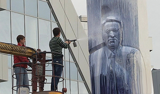 | Версия для печати Неизвестные хулиганы облили синей краской памятник первому президенту России Борису Ельцину. Вандалы также сбили буквы с постамента.Монумент установлен в центре Екатеринбурга. "Проезжая около восьми утра по улице Ельцина, наряд ДПС увидел, что памятник Борису Ельцину осквернен. Фигура первого президента России облита синей краской, сбиты буквы на постаменте. О произошедшем они немедленно доложили руководству", – сообщили в МВД по Свердловской области, передает "Интерфакс". На место происшествия выехала следственно-оперативная группа, руководство МВД России по Екатеринбургу и отдела полиции №9, на территории обслуживания которого расположен мемориал. Стражи порядка установили, что вандалы орудовали примерно в промежутке от 03:00 до 08:00 утра 24 августа. Дежурные наряды, проезжавшие по улице до этого времени, ничего подозрительного не заметили. Прибывшие специалисты службы благоустройства с автовышки сначала залили мемориал реагентом, а затем смыли краску. Замена и восстановление букв потребуют некоторого времени. Как отметил исполняющий обязанности начальника отдела полиции №9 майор Андрей Синелобов, в настоящее время уже проводятся мероприятия по установлению лиц, причастных к совершению данного правонарушения, квалифицируемого по статье "Вандализм, то есть осквернение зданий или иных сооружений, порча имущества на общественном транспорте или в иных общественных местах". Данное правонарушение предусматривает в качестве наказания до трех месяцев административного ареста. Памятный обелиск Борису Ельцину был открыт в Екатеринбурге 1 февраля 2011 года в честь 80-летия со дня рождения первого президента России. Скульптура высотой десять метров изготовлена из белого мрамора и установлена возле Уральского центра Ельцина. Автором обелиска стал Георгий Франгулян. Он же создал надгробие первого президента на Новодевичьем кладбище в Москве. Источник: